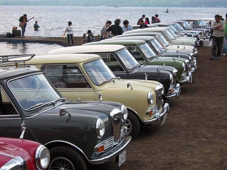 山中湖にライレーエルフ・ウーズレーホーネットを中心とした英国車が大集合。珍しい車がいっぱいですよ。